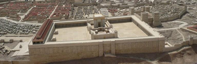 Fig. 5. The model of the alleged temple mount in the Israel Museum shows Antonia at its northwest corner. The two 600-foot aerial bridges described by Josephus are entirely absent. The absurdity of attacking the temple through this Antonia is clearly illustrated. Also note that this Antonia hardly dominates the temple, as described by Josephus (Loeb version). [Photo cropped by Chezdovi from the original by Thomazzo, Wikimedia].