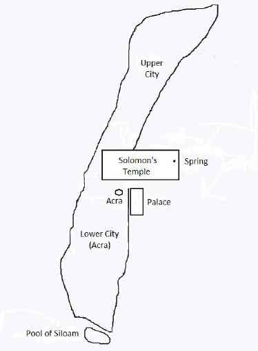 The tide turned, however, when Judas Maccabeus made an assault on the garrison of Macedonians in the “upper city…[and] drove the soldiers into the lower, which part of the city was called the Citadel [Acra]” (War I, 1, 39). Since the city of this period occupied only the southeastern hill, the “upper city” was north of the temple, and the “lower city” was south of the temple and called Acra, because the citadel stood there (just as the area around the citadel called Millo had also been called Millo).
