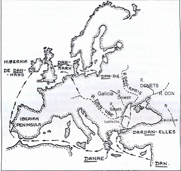 Many of these place-names are marked on the above map, and present clear evidence of Israel’s ancient migration routes to Europe.
