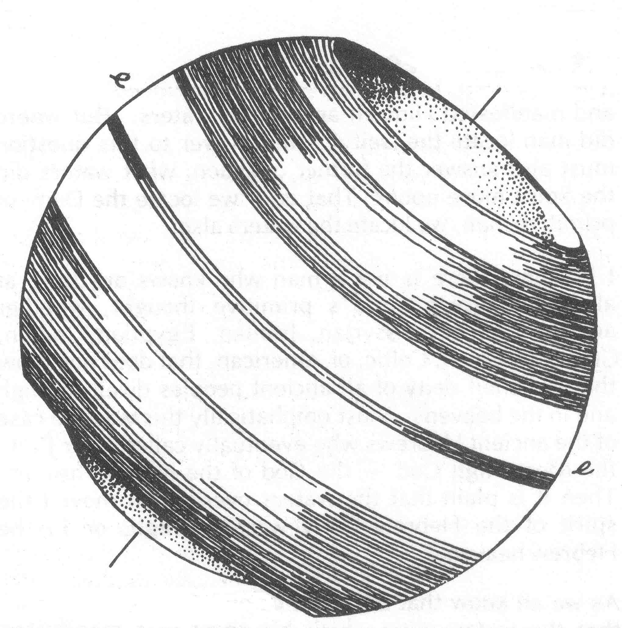 "All such changes required a great length of time, and a progressive motion of declining matter from the equator, polar-wise; also the bands and belts of the earth's annular system necessarily presented the same general aspect that Jupiter's and Saturn's do today.